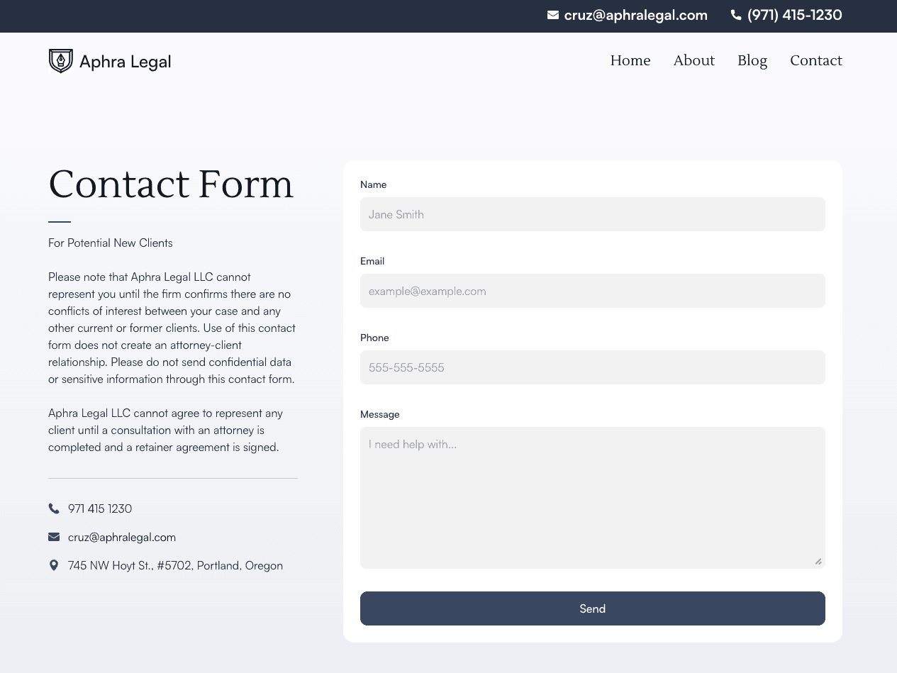 We focused on making a clean, professional, and user friendly website. That included intake forms, and easy ways for clients to contact the company. We utilized clear content and design as the brand's advantage, we created a look that conveyed trust.